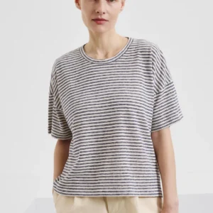Camiseta de jersey de algodón y lino a rayas «oversize»