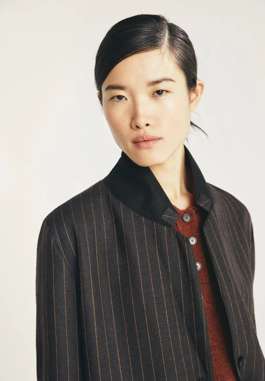 Abrigo de lana, con rayas diplomáticas.