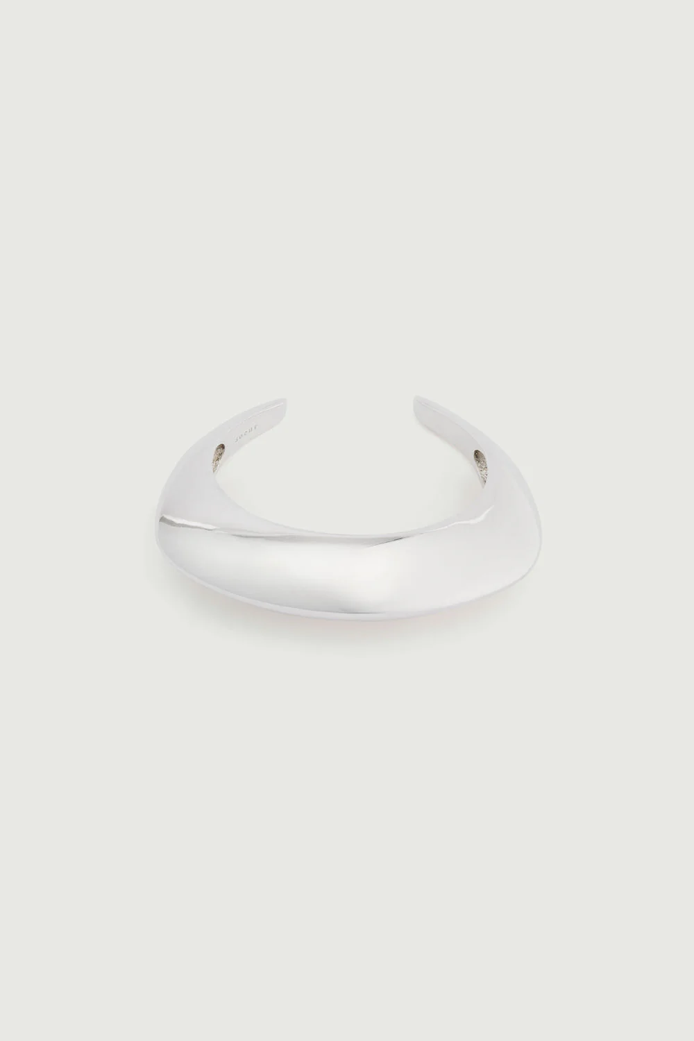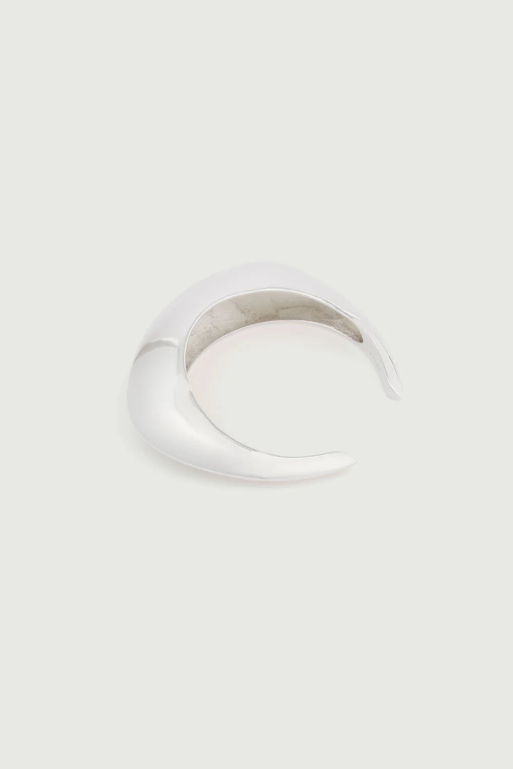 La pulsera brazalete Moon, se define por un diseño escultural y redondeado. Pulsera brazalete de plata.