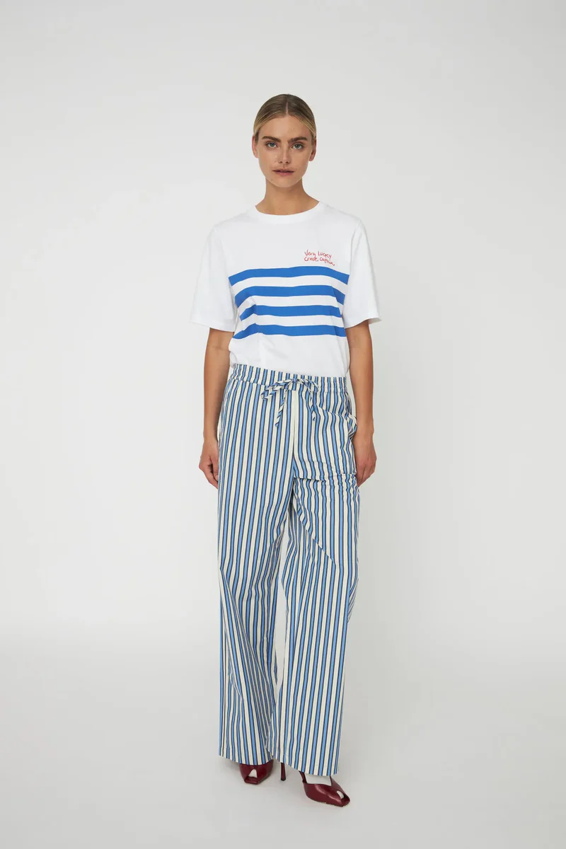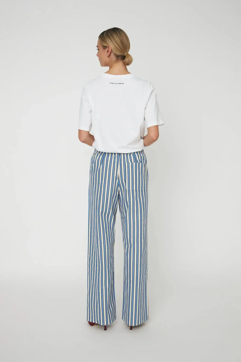 Camiseta clásica hecha de algodón suave y transpirable. Diseñada con cuello redondo, mangas cortas y un corte holgado. La camiseta presenta un estampado gráfico a rayas en la parte delantera y un logo de Stella Nova colocado en la parte superior de la espalda.