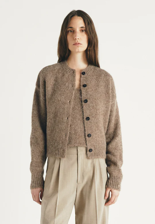 Cárdigan de mezcla de alpaca, manga larga y cuello redondo. Cierre con botones en la parte delantera.