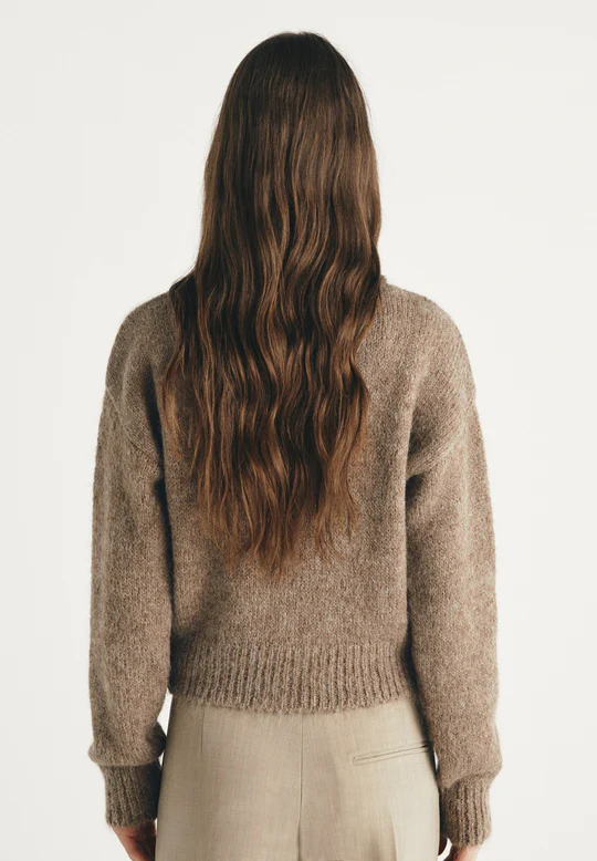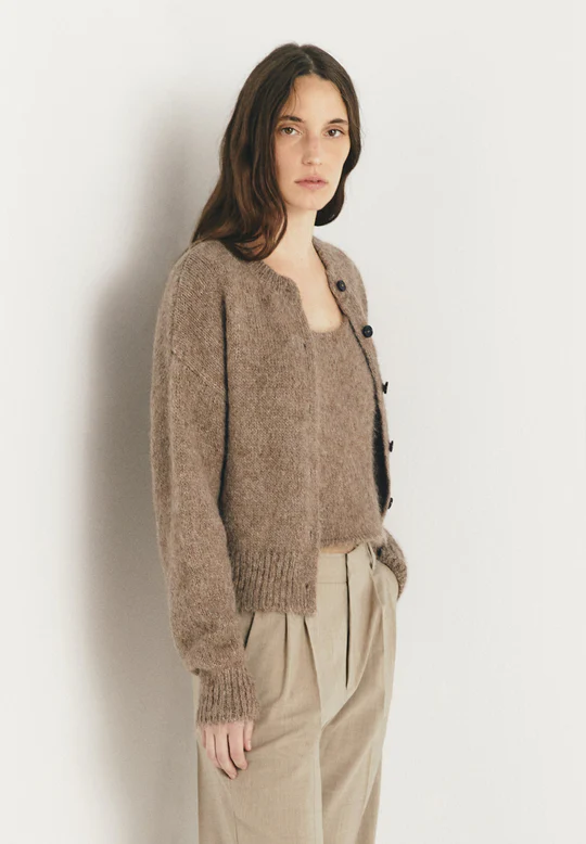 Cárdigan de mezcla de alpaca, manga larga y cuello redondo.