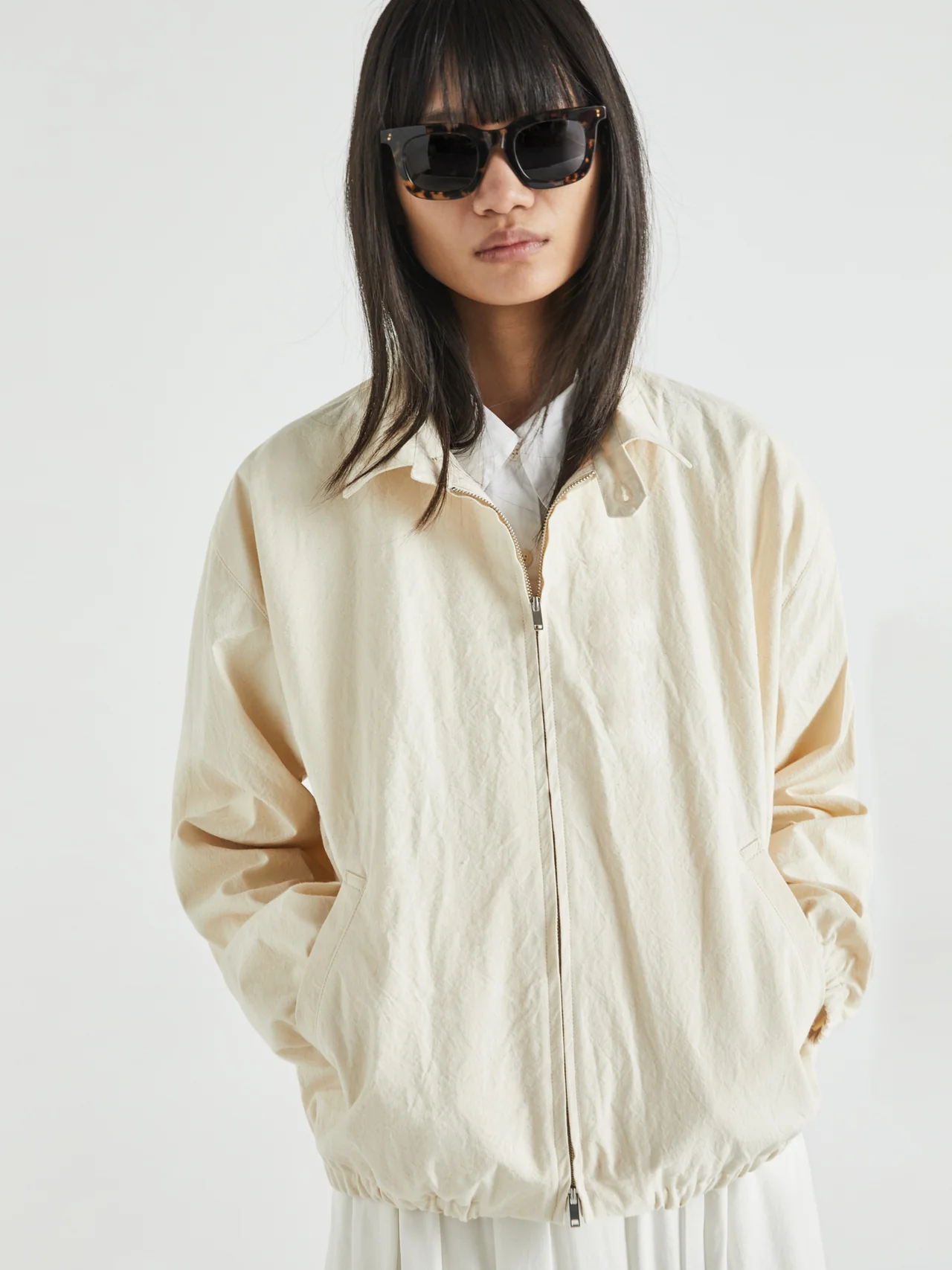 Chaqueta de algodón. Cuello clásico, cremallera frontal de doble cursor. Bolsillos frontales. Corte regular y  longitud estándar.
