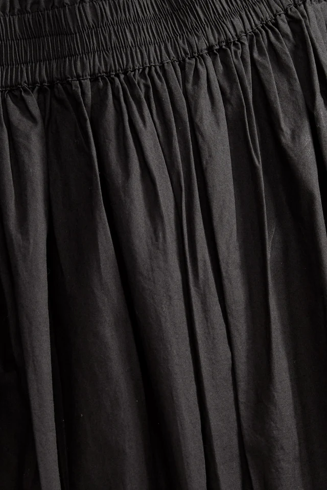 Falda hecha de algodón orgánico, con cintura elástica y bolsillos laterales, color negro.