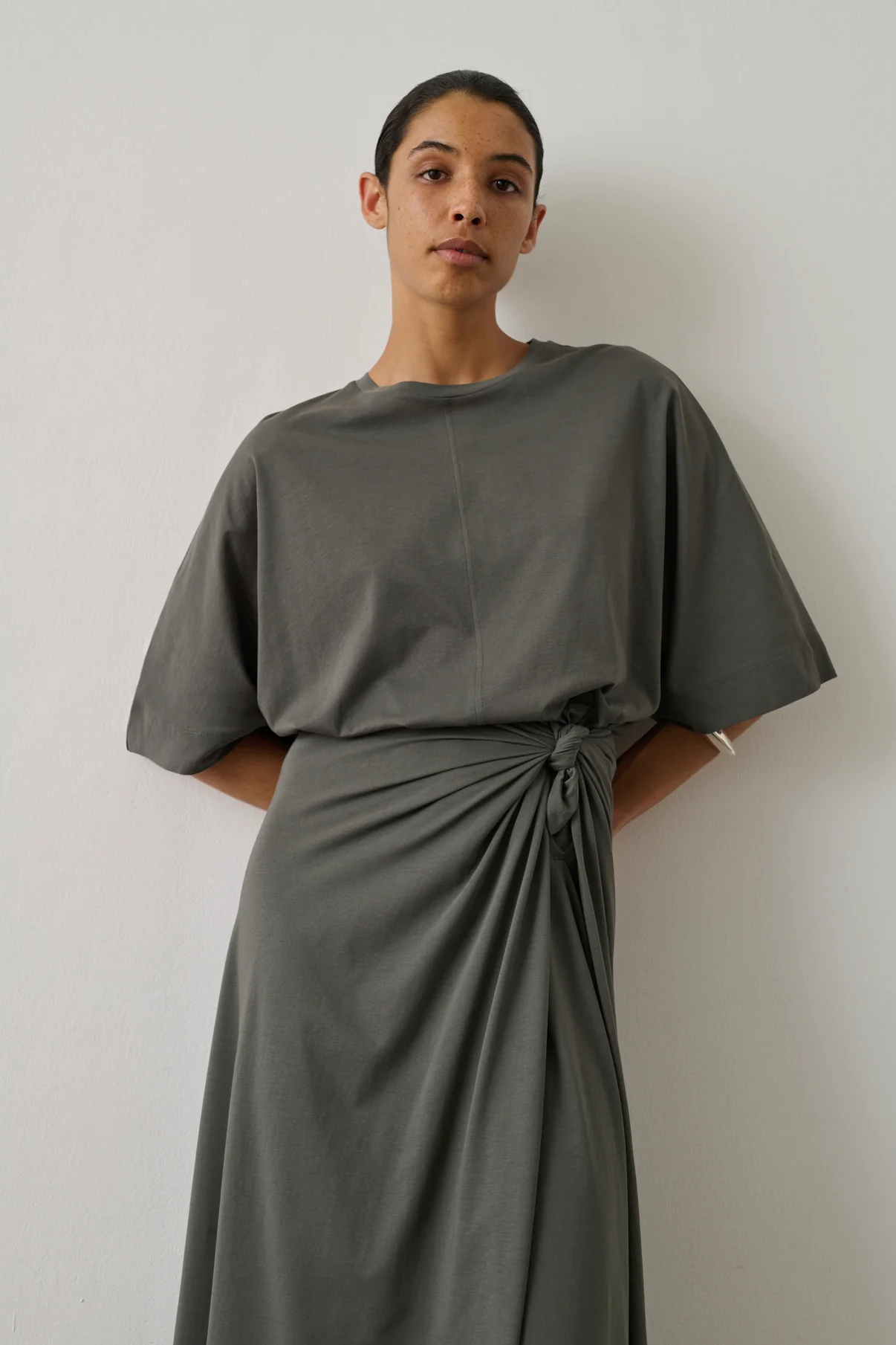 Falda larga de punto de algodón de corte recto, anudada a la cintura.