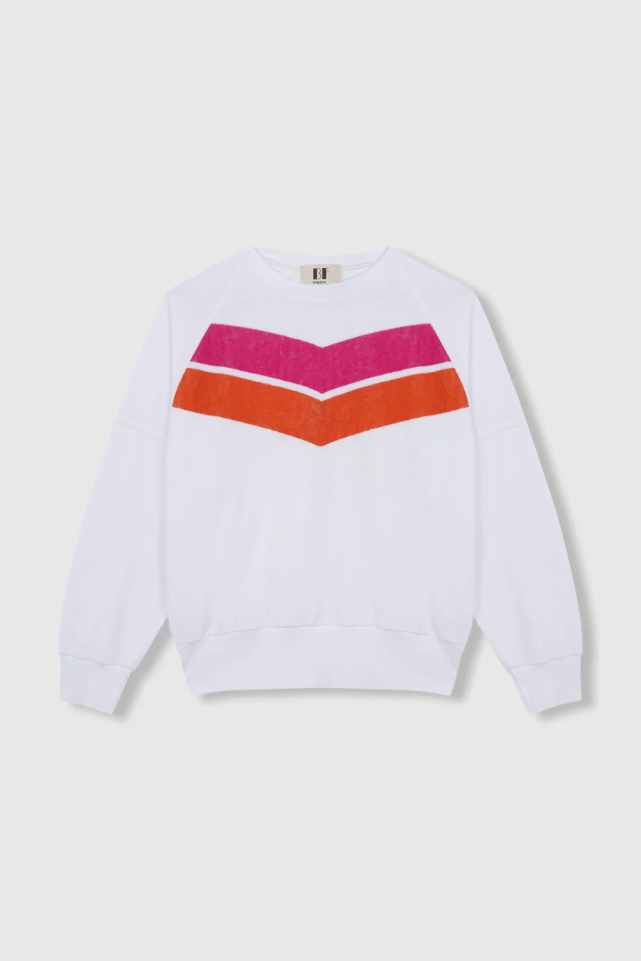 Jersey estilo sudadera, de tejido rizo con print de flechas de fit regular. Manga ranglán tres cuartos, con puño de canalé. Cuello redondo de canalé. Bajos de canalé.