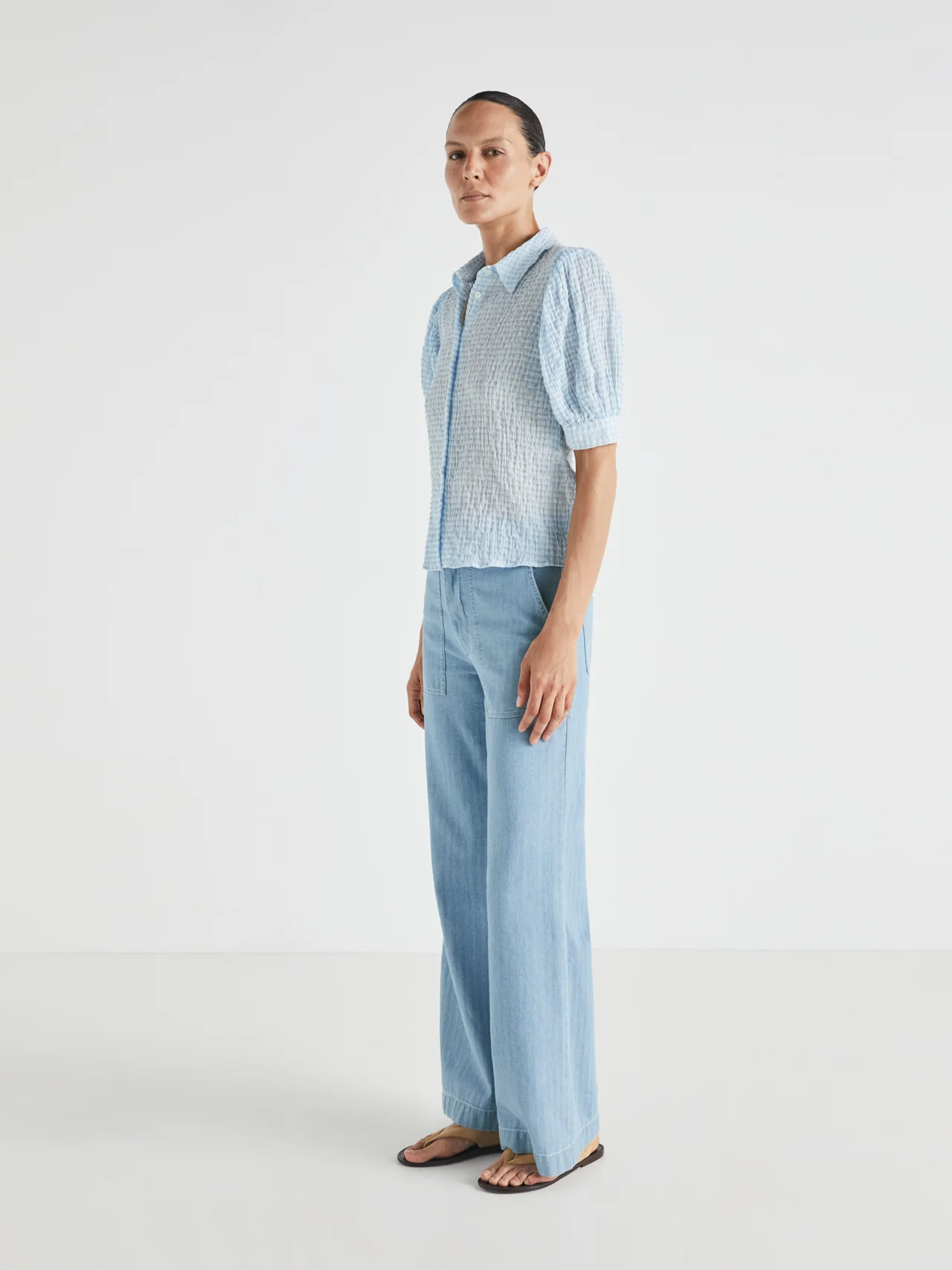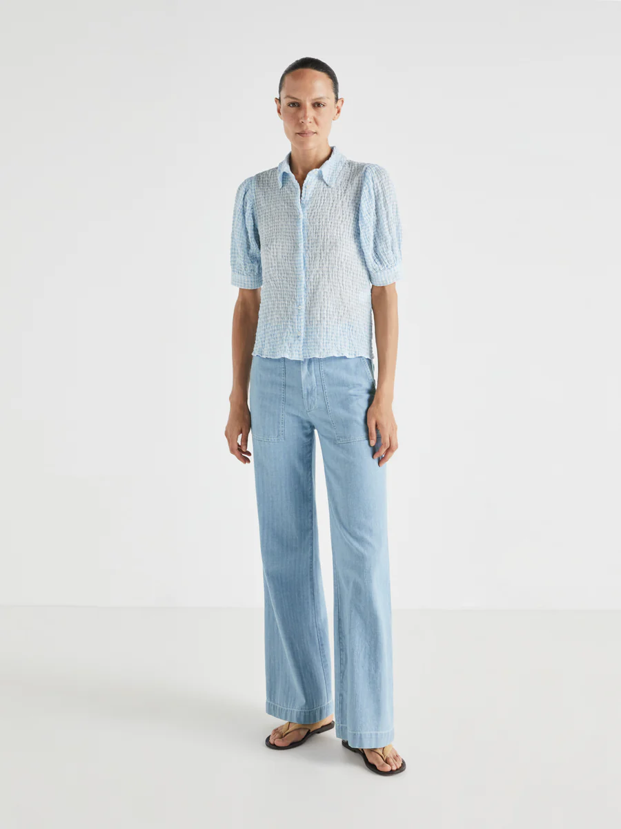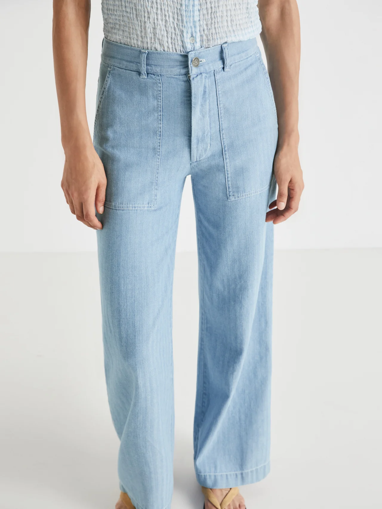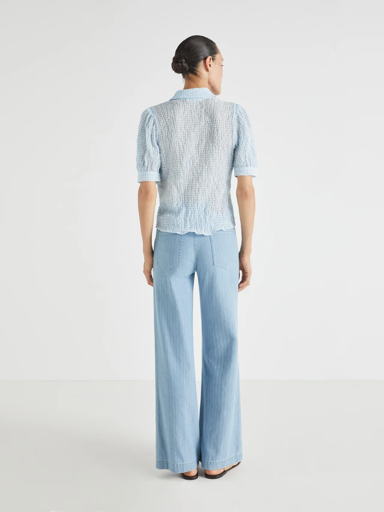 Pantalón con detalle de espiga, pierna recta, en color azul.