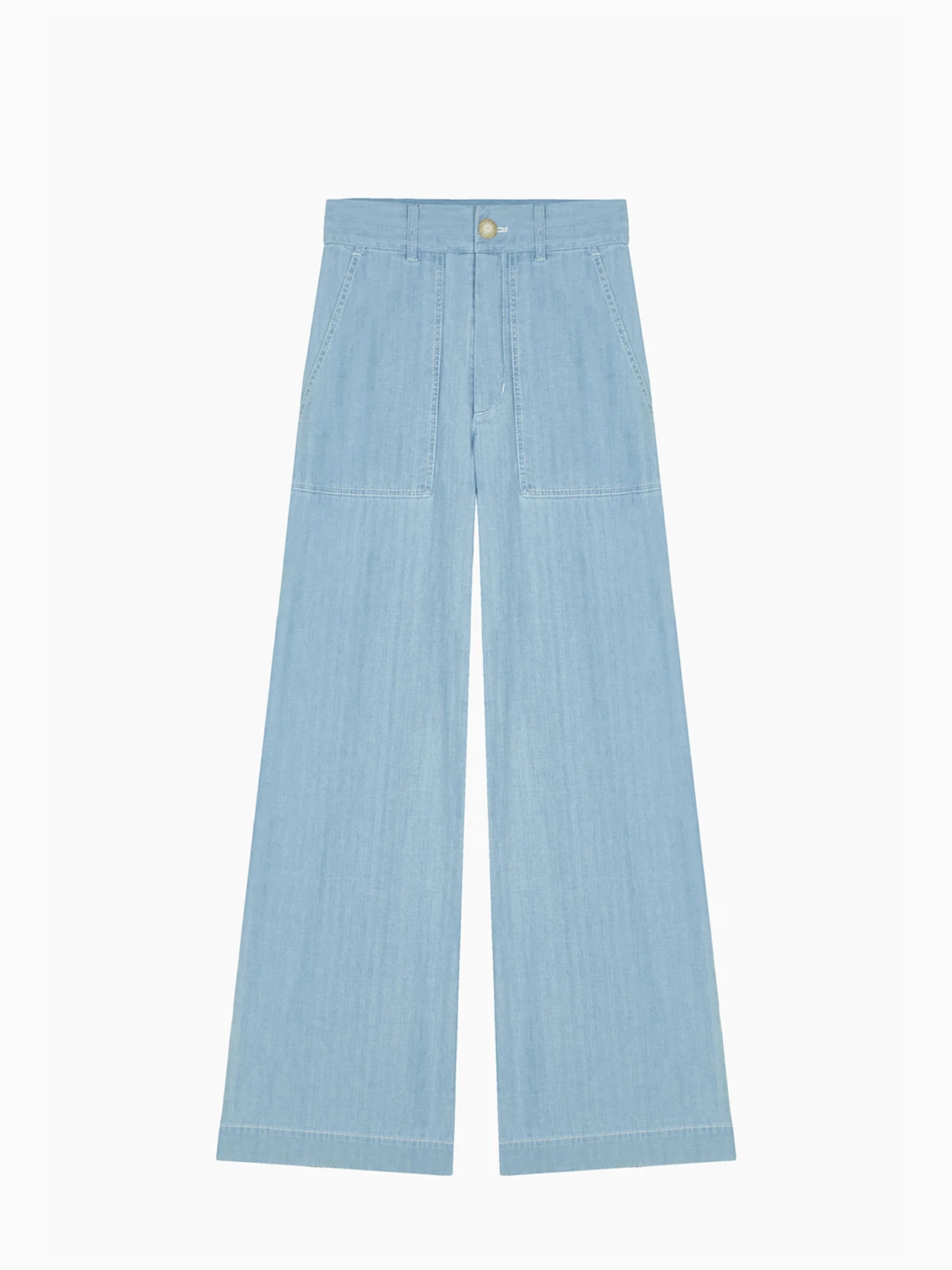 Pantalones con detalle de espiga en algodón japonés. Cintura media, bolsillos delanteros y bolsillos traseros, pierna recta. Ajuste regular, largo regular.