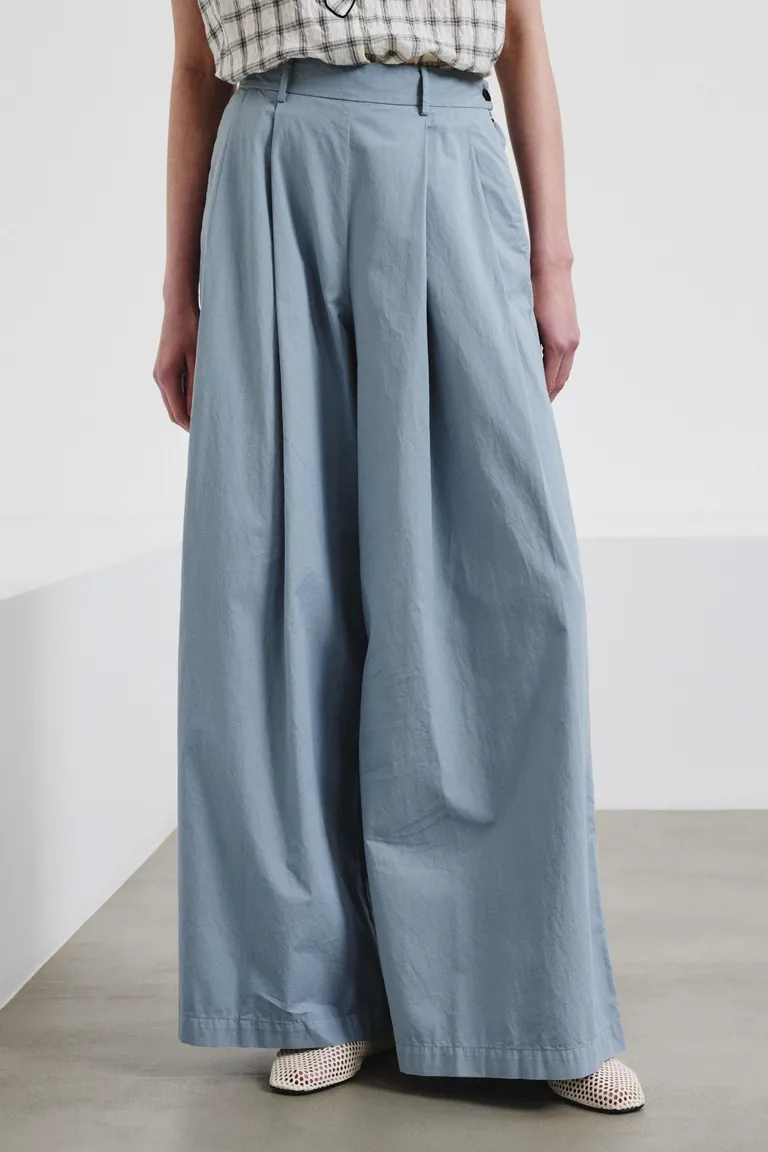 Etiquetas: algodón, bohemian vigo, bolsillos, color azul acero, pantalón, Pantalón de gabardina de algodón pierna ancha, pierna ancha, Pomandére