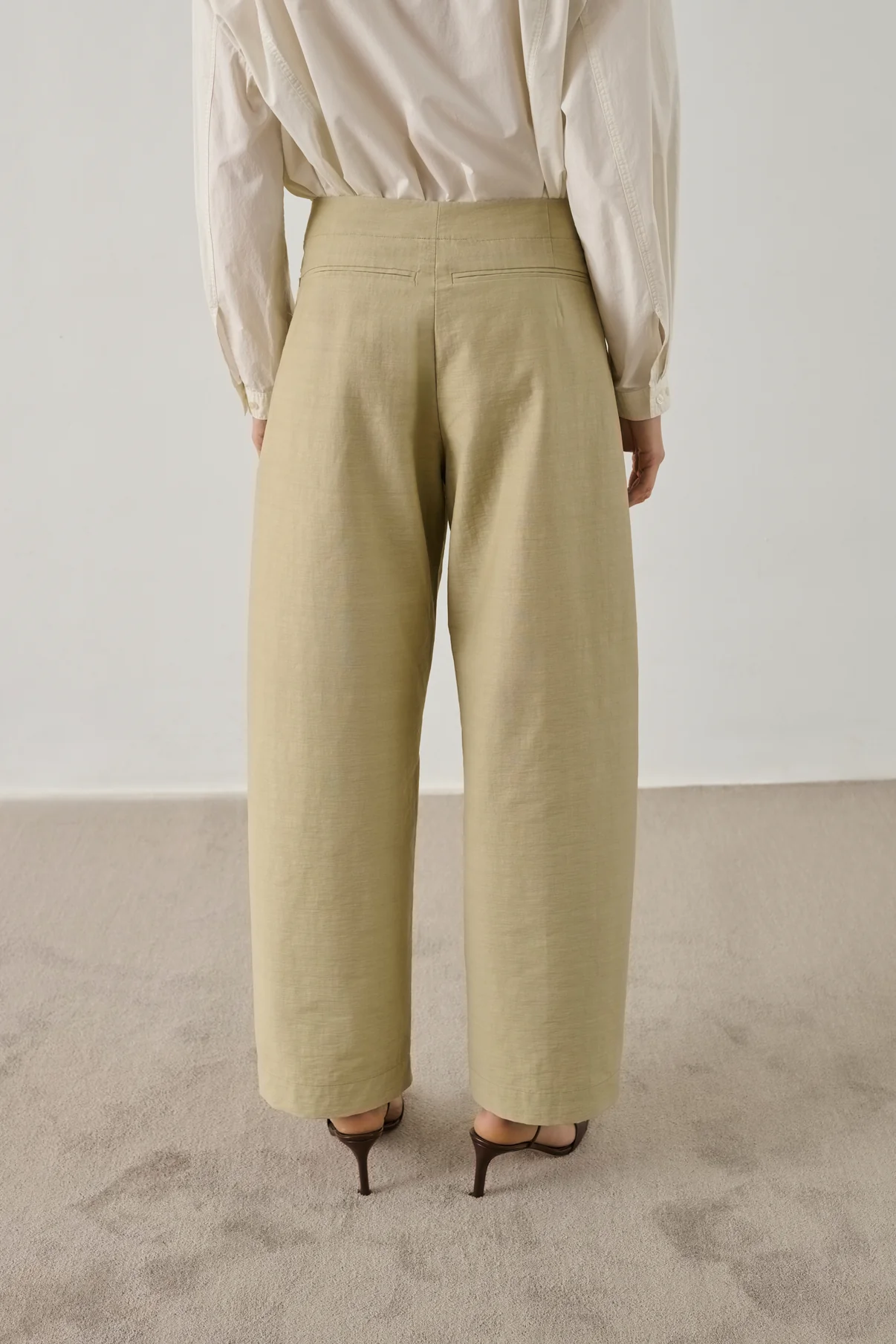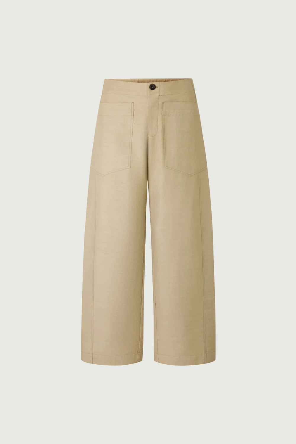 Pantalones  de corte amplio, perneras ligeramente redondeadas.