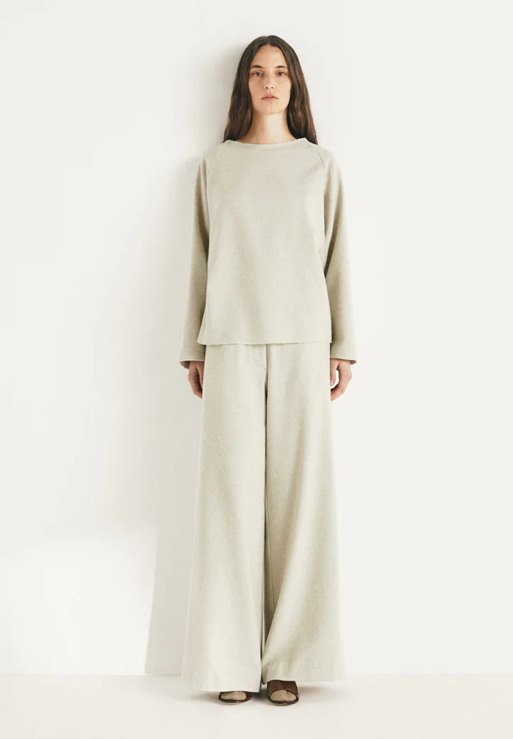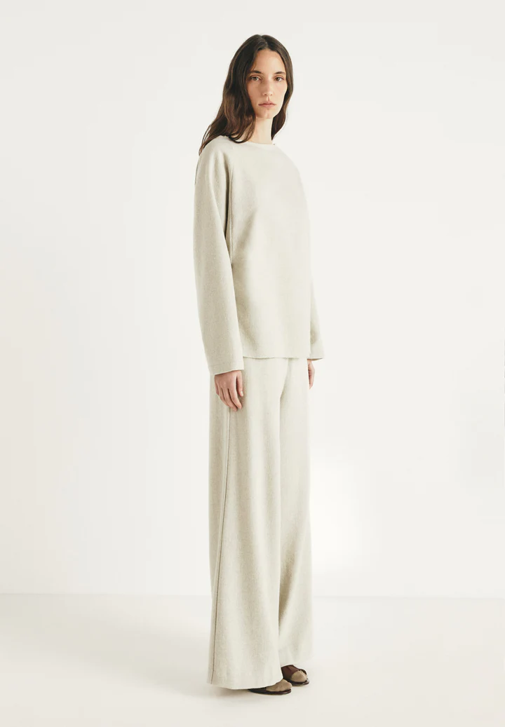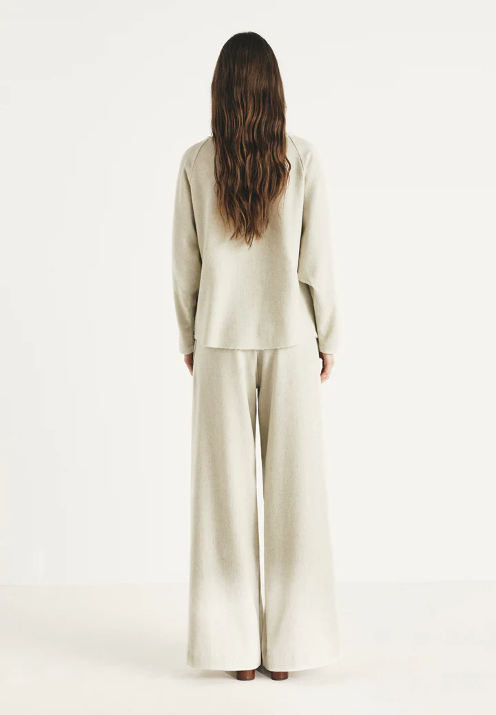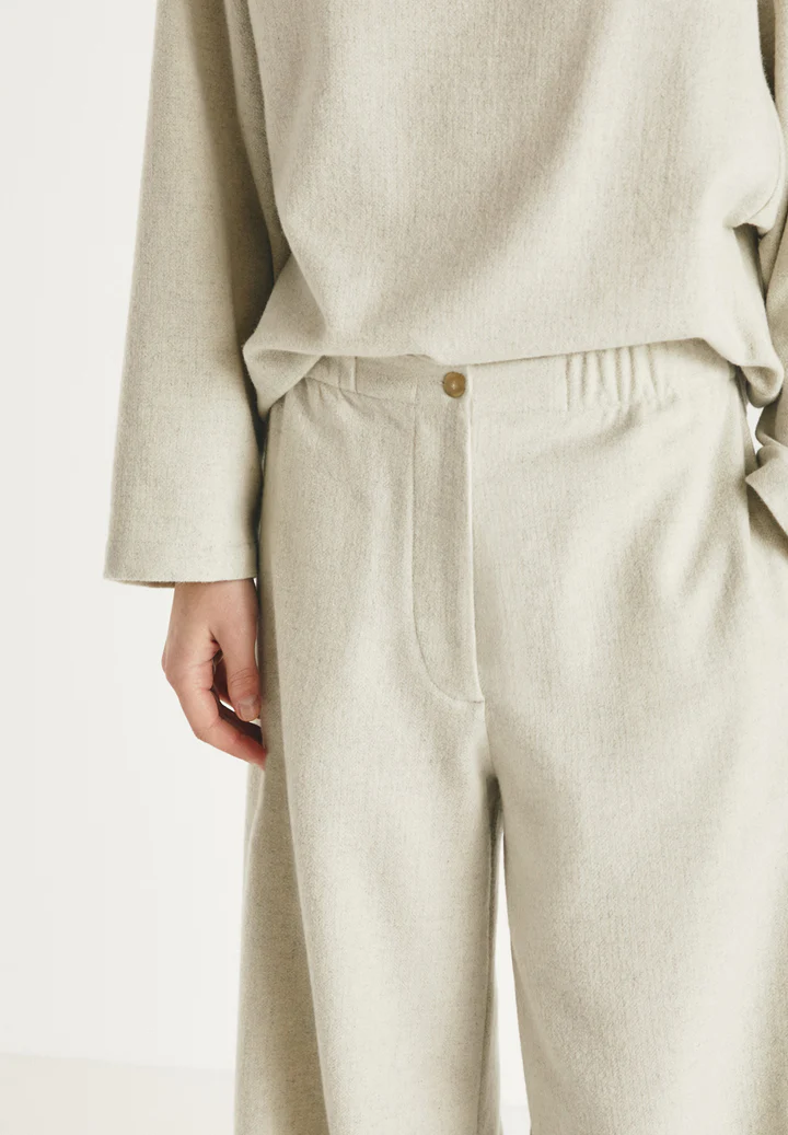 Pantalón mezcla lana, con cintura elástica.