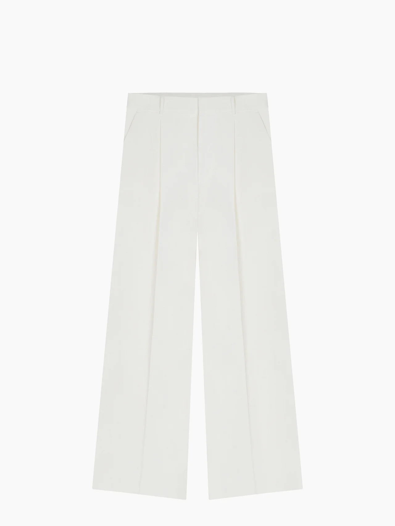 Pantalones de sastrería en una mezcla de algodón, seda y lino. Cintura alta, cremallera oculta en la cintura, pliegue delantero, pierna recta. Bolsillos laterales. Ajuste regular, largo regular.