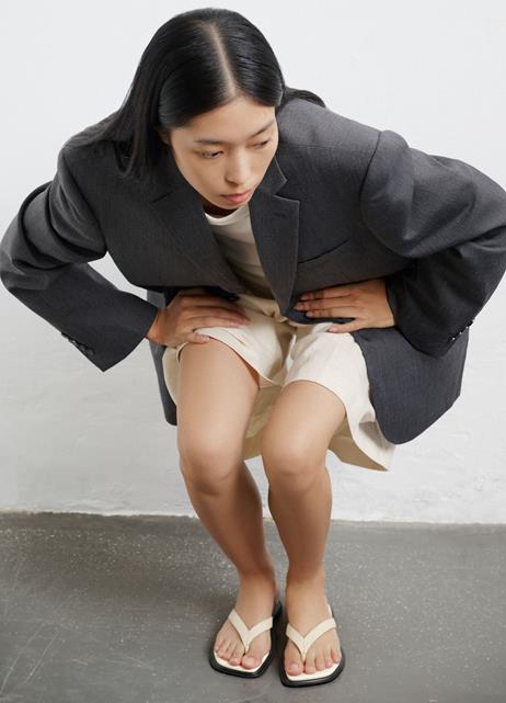 Sandalias de dedo, con diseño de puntera cuadrada de color blanco roto.