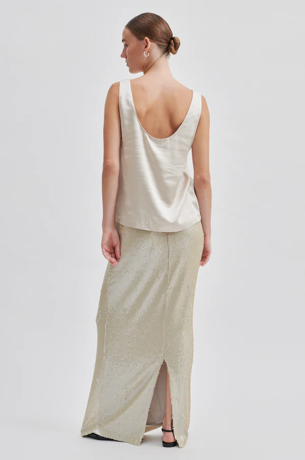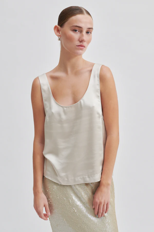 Top sin mangas de satén. Confeccionado en satén suave y sedoso, con una calidad drapeada. Ajuste regular, para una silueta relajada y fluida.