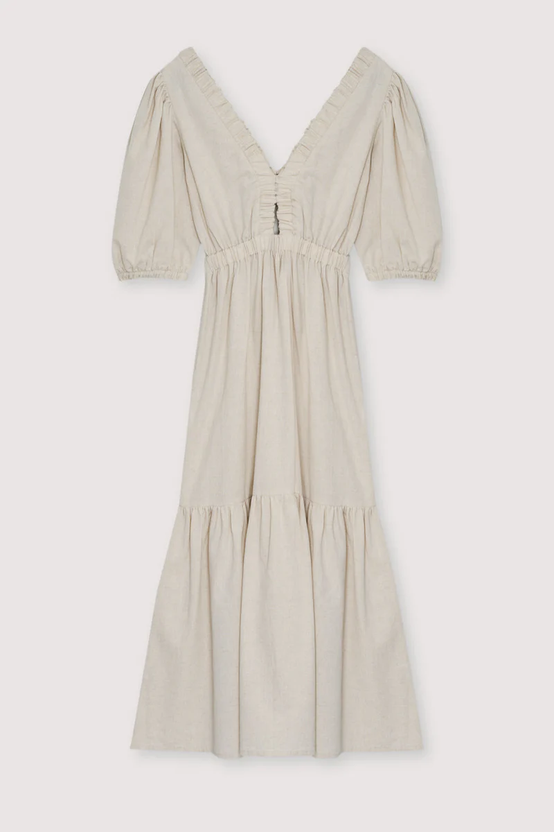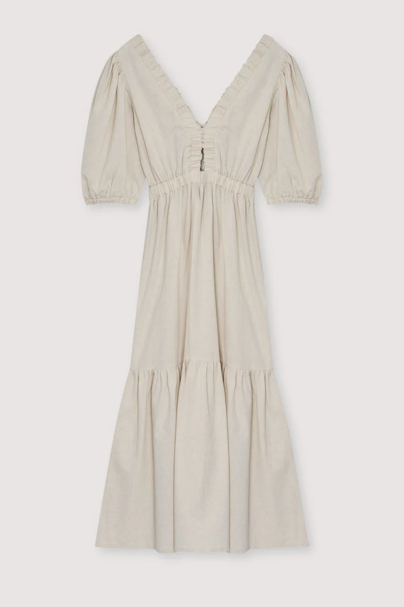 Vestido largo de lino, color arena.